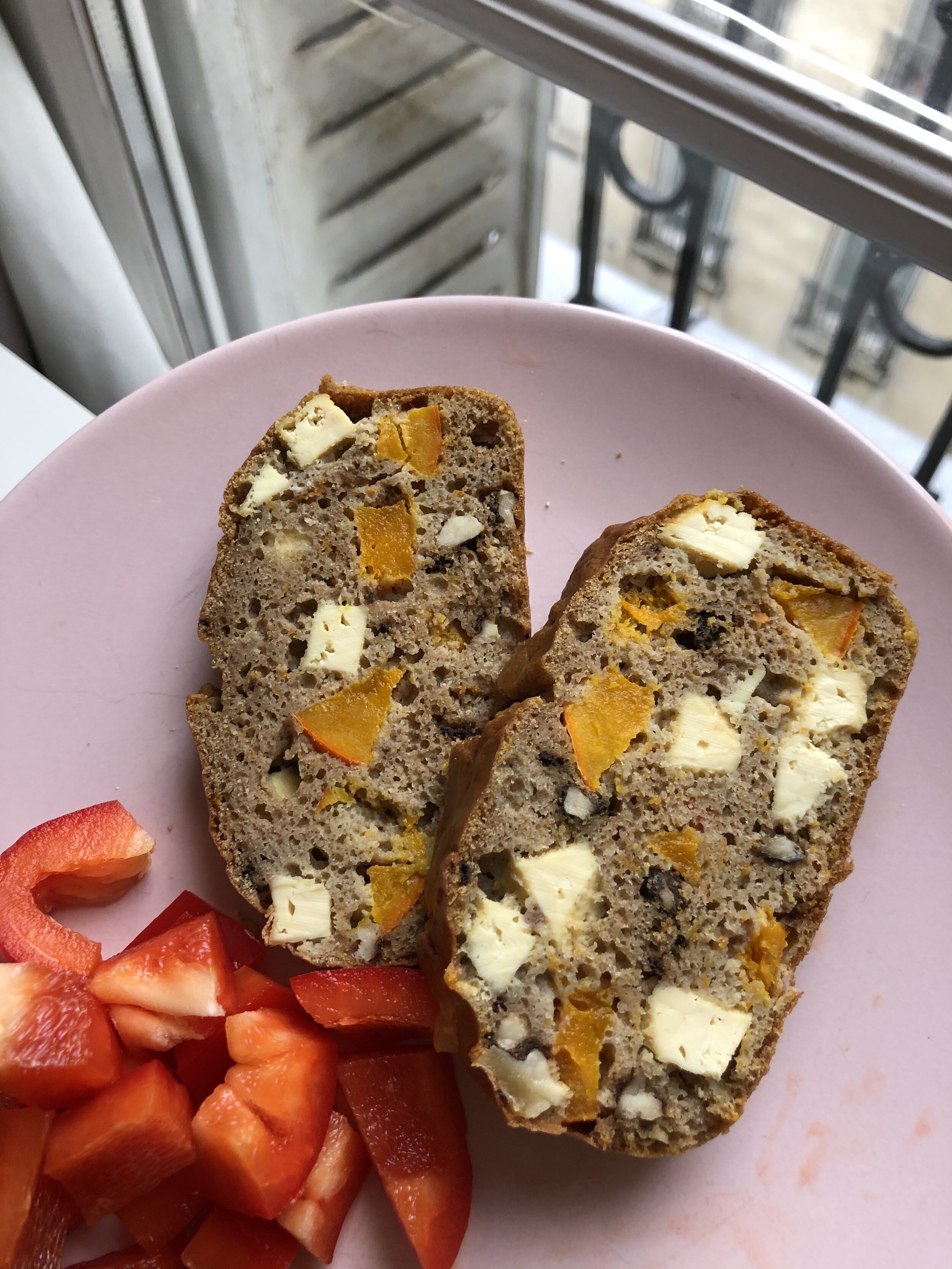 Parfois, quand le pain me manque et que j’en ai pas de (bon) sous la main, j’aime bien me préparer un cake salé. C’est beaucoup plus facile à réussir (je trouve) que du pain. Certes, ce n’est pas exactement comparable, mais j’ai décidé de ne plus comparer le “avec” et le “sans” gluten, j’ai accepté de me nourrir “différemment”. Le cake salé est donc devenue mon alternative maison au pain pour le moment, tout aussi bon (si pas même meilleur !). Ici, je propose une recette avec du potimarron, des noix et du fromage, mais le cake salé est déclinable à souhait ! Tellement de combinaisons différents sont possibles et délicieuses. A vous de jouer :)